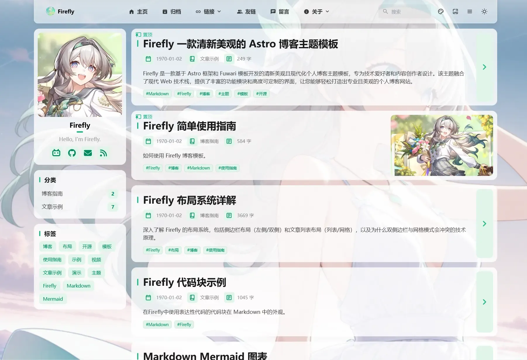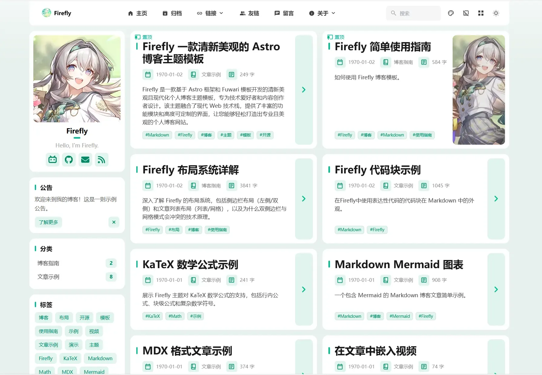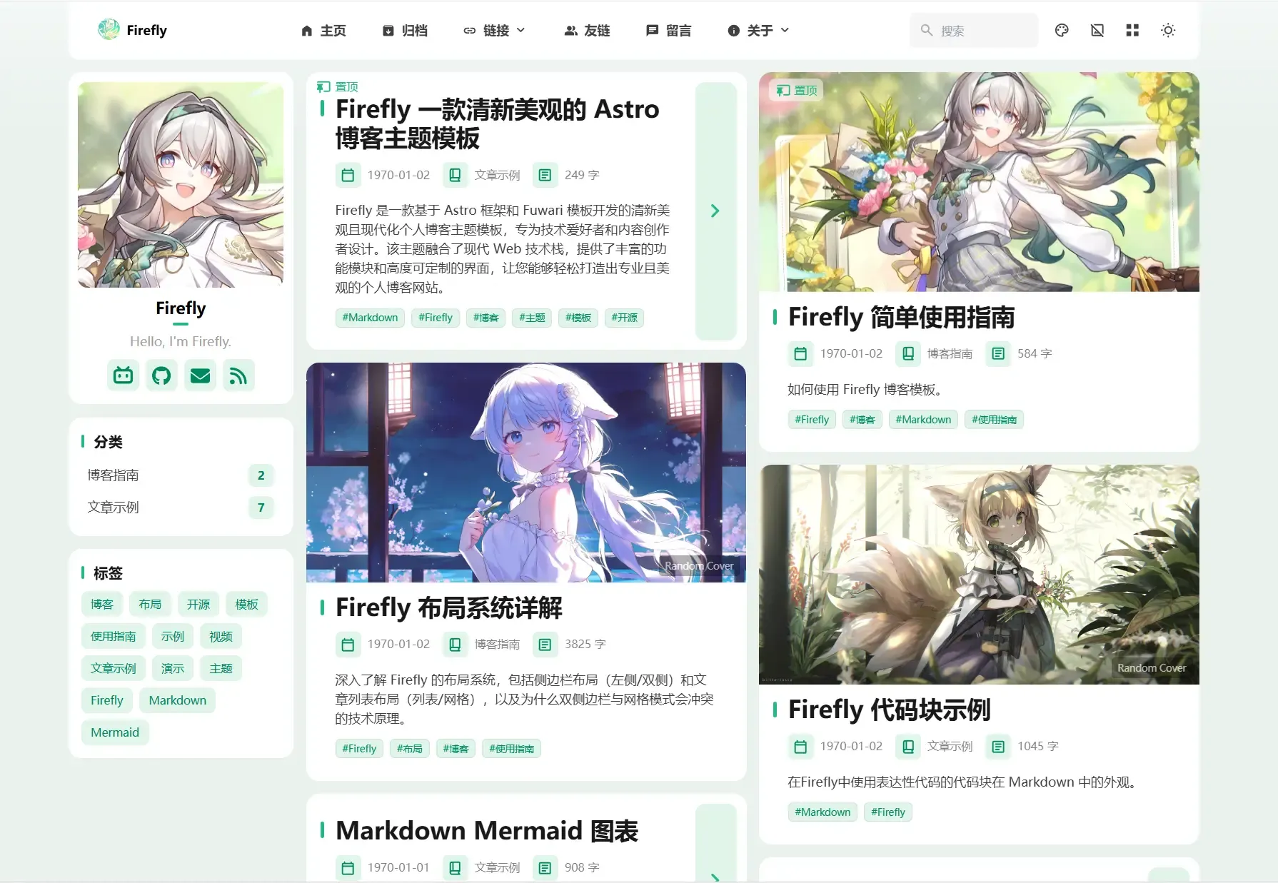 文章列表是博客首页和归档页的核心内容,Firefly 提供两种展示方式。